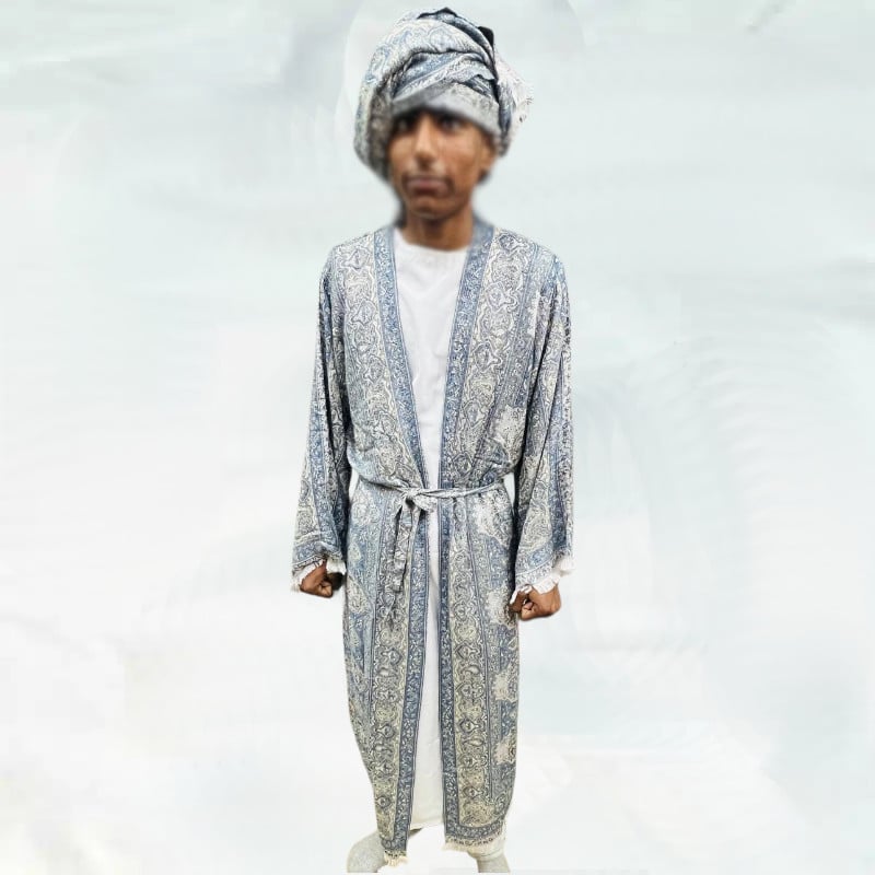 Design appears very prominently on the shawl.